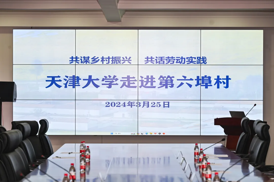 西青区辛口镇第六埠村党委书记、村委会主任郝庆水首先介绍了第六埠村的基本情况、乡村振兴建设情况和相关经验做法。西青区辛口镇党委副书记王海涛介绍了“重走长征路”红色体验式研学教育产业、乡村振兴劳动教育基地建设情况,邀请天津大学广大师生为第六埠村、为建设美丽乡村做出更多贡献。