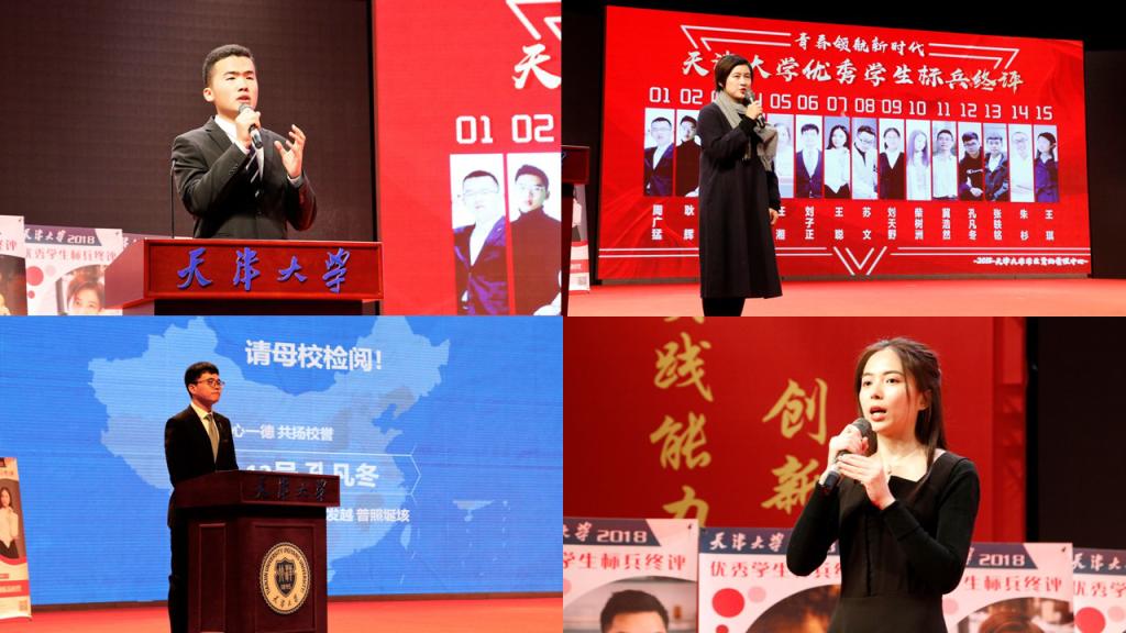 终评会现场,15名候选人各显其能,在5分钟的展示时间中充分展示了自己在学业成绩、科学研究、社会实践、社团工作、志愿服务、文艺体育等多方面取得的傲人成绩。他们中有在国际顶级期刊发表高质量论文的科研达人,有保持专业成绩第一的学霸大神,有经历丰富、综合能力突出的校园精英,还有会打篮球、会唱歌的气质女神。他们与在场所有人分享了自己在大学期间的奋斗历程,展现了新时代北洋学子的青春风采,博得了全场人员的热烈掌声。