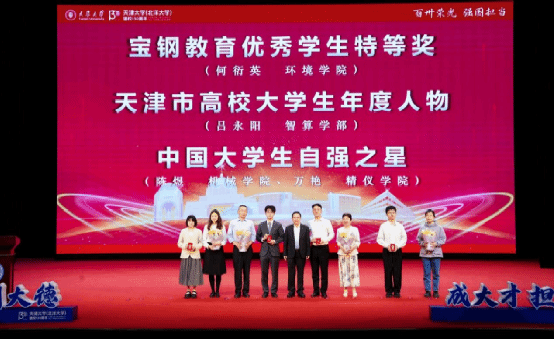 柴立元为中国大学生自强之星、天津市大学生年度人物和宝钢教育优秀学生特等奖获得者颁奖