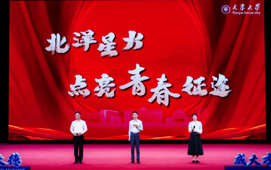 本次表彰共三个部分,每个部分还融入了诗朗诵、主题宣讲、合唱等教育环节,诗朗诵《百卅风华筑梦北洋 星火长明青年担当》展现了130年来,天大人始终践行时代使命的奋进故事;主题宣讲《把家国情怀写进青春序列》、《我在天大的成长故事》、《北洋星火,点亮青春征途》讲述了天津大学在“强工、厚理、振文、兴医、交叉(融合)”的学科发展思路指导下,为学生搭建全面发展的舞台,让学生在参与科研、创业、志愿服务过程中,为新质生产力发展、国之重器研发、民生福祉增进贡献力量。
