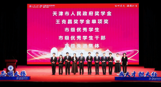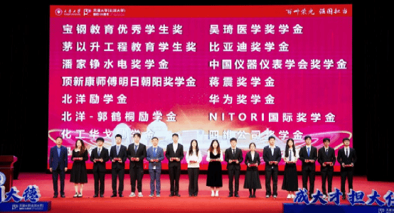 表彰会现场,还有12位学子作为道德文明先进、体育风采奖、文艺先进个人、劳动教育先进个人、志愿者标兵、学业典范以及先进集体代表上台领奖,他们用奋斗书写全面发展的青春答卷,有力践行了天津大学百卅年来矢志“兴学强国”的责任与担当。