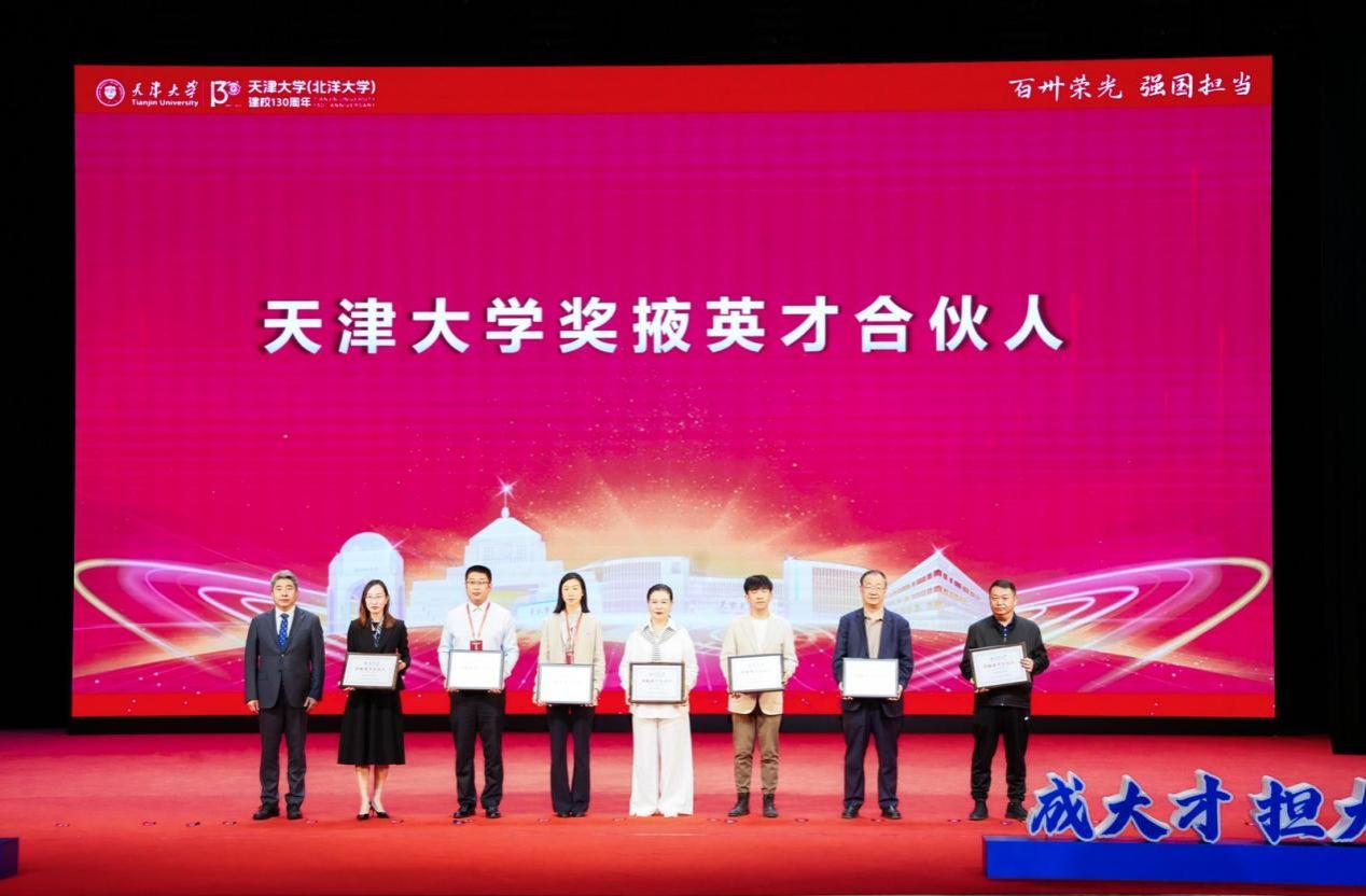天津九安医疗电子股份有限公司董事长、天津校友会会长、天津大学宣怀学院院长刘毅,以及北洋春晖奖学金捐赠人、1967届英语师资班校友子弟汪澜分别作为设奖单位代表发言。刘毅介绍了宣怀学院为落实人才培养目标所推行的 “金字塔攀登计划”,并提出打造 “天大+碳湾” 模式,期望在未来 5 年内,成功孵化独角兽企业,为天津的高质量发展注入强劲动力。汪澜回顾了1965年天津大学响应号召成立“英语师资班”, 2015年七位校友为报母校培育之恩,设立“北洋春晖教育基金”奖掖师生的历史。他表示作为子女将追随父辈脚步,持续捐资助学,传承这份深厚情谊。