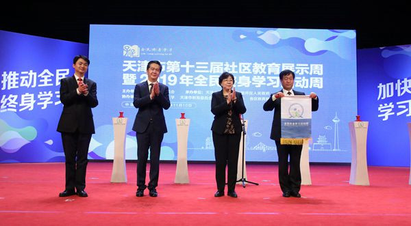 本站讯(通讯员娄秀丽、盛筠 摄影唐蒙)11月10日,天津市第十三届社区教育展示周暨2019年全民终身学习活动周(下称“活动周”)启动仪式在天津大学北洋园校区隆重举行。活动周深入学习贯彻习近平总书记关于教育的重要论述和全国教育大会精神,贯彻落实党的十九届四中全会提出的“构建服务全民终身学习教育体系”的新任务。本届活动周主题为“推动全民终身学习,加快建设学习大国”,开幕式由天津市教育委员会主办,天津大学、天津市南开区人民政府承办。天津市人民政府副市长曹小红,天津市人民政府副秘书长王璟,教育部职业教育与成人教育司副司长采守宽,中国成人教育协会常务副会长张昭文,天津市委教育工委常务副书记、市教委主任荆洪阳,天津市南开区委副书记、区长孙剑楠,天津市教委副主任白海力,天津大学党委副书记赵美蓉,天津大学党委常委、副校长巩金龙,天津市南开区人民政府副区长沙红出席了活动。还有来自天津市各区主管教育的区长,教育局局长、分管局长,各普通高校、职业院校、成人院校的领导,相关企业代表和各区市民代表等千余人参加了本次活动。