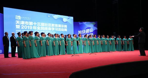 天津市创新“城市职教集团”内涵发展,大力推进学习型城市建设。滨海职教集团喜获中国成人教育协会2019年优秀成人继续教育院校称号,滨海职业学院副院长杜学森就服务全民终身学习上的理念、做法和经验作了现场分享。获得全国“终身学习品牌项目”的天津市朗诵艺术团,带来了《悦读乐享,立公增能》诵读表演,旨在通过美育引领,弘扬社会主义核心价值观和中华民族优秀传统文化,引领“全民悦读”,营造天津市良好的文化氛围。平均年龄为65岁的天津市老年大学合唱团合唱《终身学习之歌》,引领大家追寻终身学习的幸福脚步,谱写新时代继续教育的新篇章。