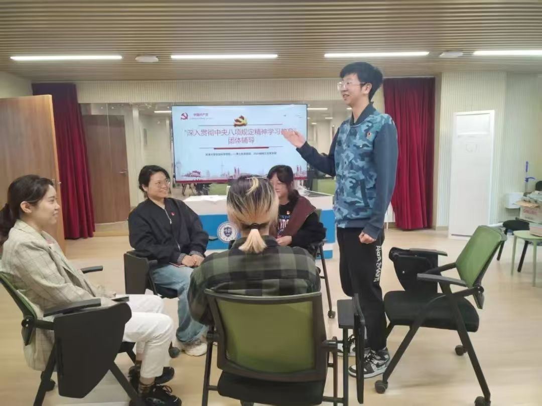 为深入贯彻落实党中央关于深入贯彻中央八项规定精神学习教育的要求,推动学生党员深刻领会中央八项规定精神内涵,争做新时代党员先锋,5月9日,医学部生命科学学院2024级硕士生党支部与博士生党支部以团体辅导的形式开展了一场别开生面的专题党课学习。