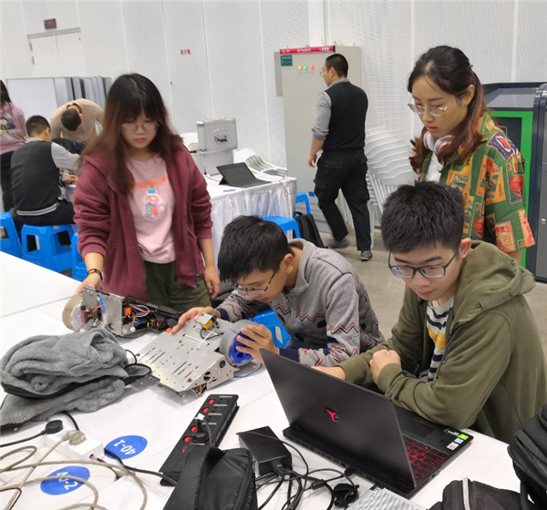 到达比赛现场后,大家心中的那根弦依然时刻紧绷,利用比赛前一天的调试时间,最大程度地调试机器人以适应现场环境。