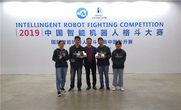 本站讯(通讯员 闫传滨)由中国人工智能学会、国际机器人竞技与创客教育联盟主办,中国人工智能学会智能产品与产业工作委员会承办的2019中国智能机器人格斗大赛,于2019年10月25-27日在杭州梦想小镇成功举办。数千高校学子秣马厉兵,开展巅峰对决,带来了全新的科技视觉盛宴。经过为期两天的激烈角逐,由姜杉老师、王辉老师、董靖川老师、闫传滨老师指导的两支队伍最终获得了一等奖和三等奖的优异成绩。
