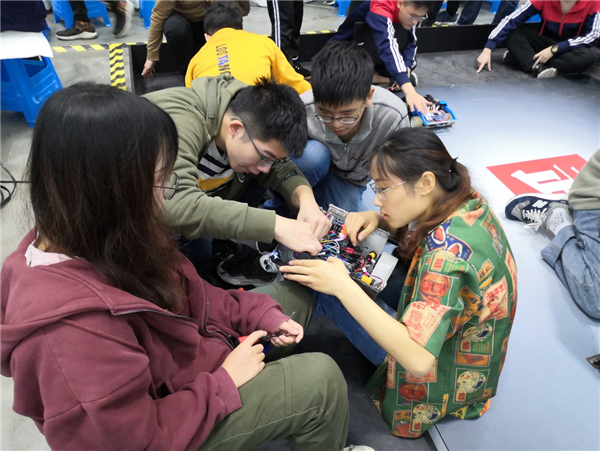 我校机械学院两支队伍在经过了为期3个月的紧张准备后,顺利地通过了严苛的初审,取得了前往浙江杭州总决赛的门票。在通过初审之后,带队老师和同学们并没有因此有一丝松懈,而是更加废寝忘食地为最后的比赛进一步完善机器人的机械结构和进攻策略。在此期间,同学和老师积极组织讨论,有了想法就大胆提出,经过大家分析后便大胆尝试,为此老师和参赛同学们夜以继日地为实现各种精妙的想法而努力。