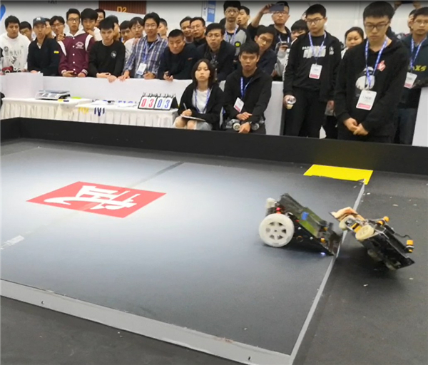我校机械学院两支队伍参加的为轮式机器人格斗比赛,此项比赛反映了中国传统的擂台武术文化,要求自行设计的机器人可以自主登上擂台,自主寻找对手并攻击,使对手掉落擂台或失去攻击能力。重点考察选手综合利用移动机构、场地环境和目标感知、高功率密度驱动、嵌入式控制、基于深度学习的目标特征识别的人工智能技术等能力。