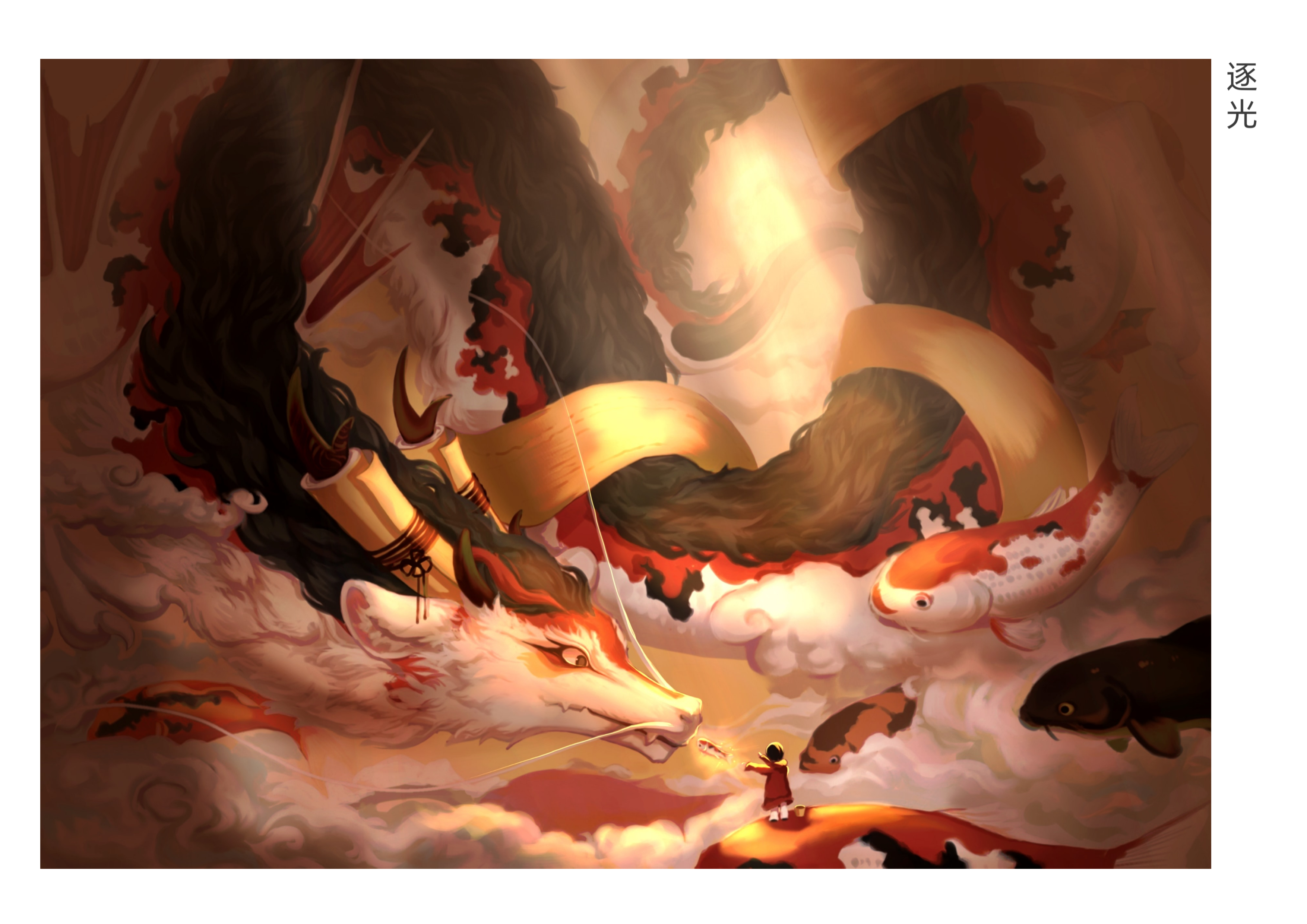 本幅插画展现小鱼化龙的景象,鱼跃龙门,前途似锦。每个孩子自降生便被给予期待,这份期待也是孩子尚为萌芽待发的种子时无限的可能,期望成才。鱼儿在水中游弋时,它感受到周围的期待和压力,明白自己肩负着不同寻常的使命,每一次腾飞都伴随着勇敢的决心。一朝鱼跃龙门跨越了所有困难和障碍,到达成功的彼岸,每一位年轻人奋斗的学习时光也是如此。每个人都有追逐梦想的权利和能力,只要我们怀揣着梦想,付出努力和勇气,就能够战胜生活的艰难与困苦,最终迎来成功的曙光。