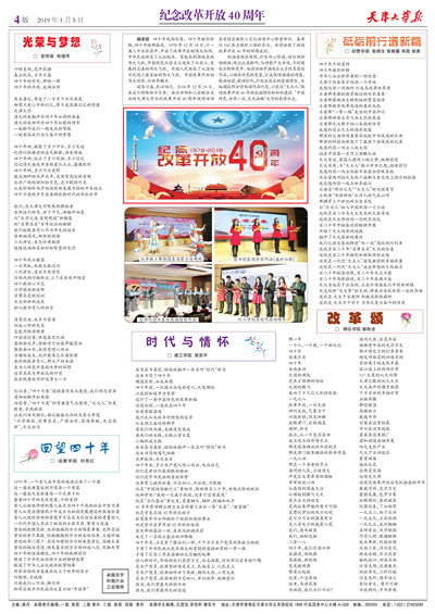 朗诵者饱含深情,抒发内心情感,语句间抑扬顿挫;观众认真聆听,与诗歌产生共鸣,不时爆发出阵阵掌声。颂诗活动中涌现出众多优秀原创作品,以独具特色的笔墨,汇成深情满满的诗篇,歌颂祖国,歌颂时代,抒发出浓浓的爱国情怀。本版摘选部分诗朗诵作品刊发,以表达“天大人”歌颂改革开放40年的赤诚情怀和加快建设“中国特色、世界一流、天大品格”大学的豪情壮志。