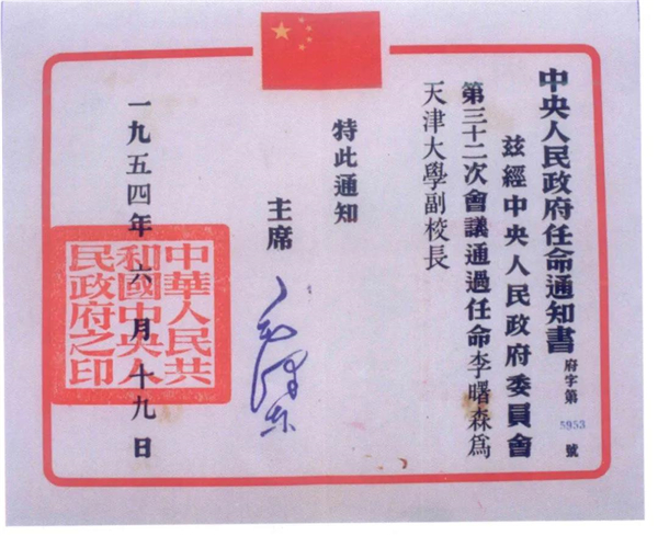 1953年11月,李曙森受中央委派到天津大学工作。在先后担任天津大学副校长、党委书记、校长、名誉校长期间,他以一个教育家的远见卓识积极探索新中国高等教育的规律,为我国高等教育事业和天津大学的发展作出了卓越贡献。