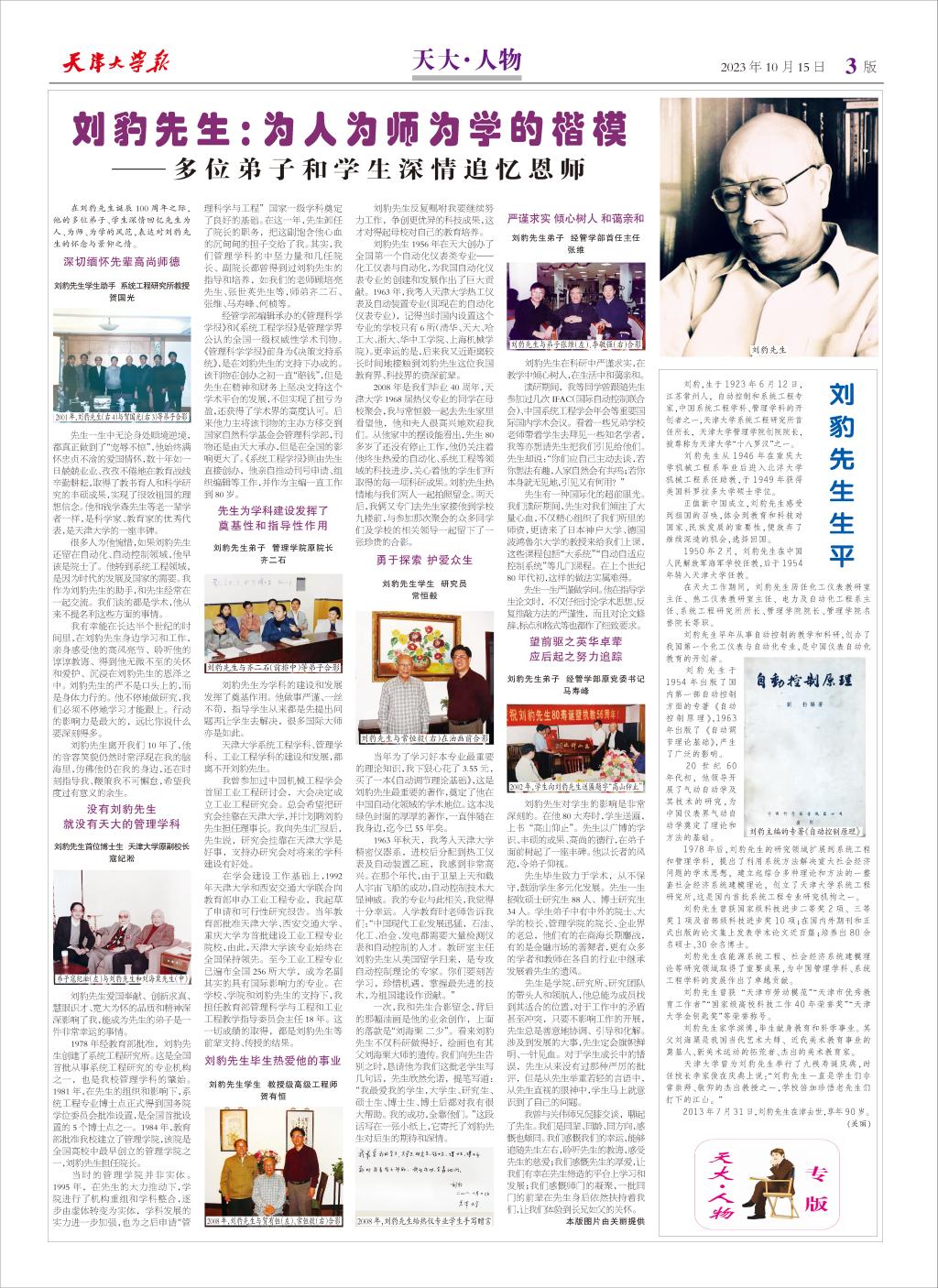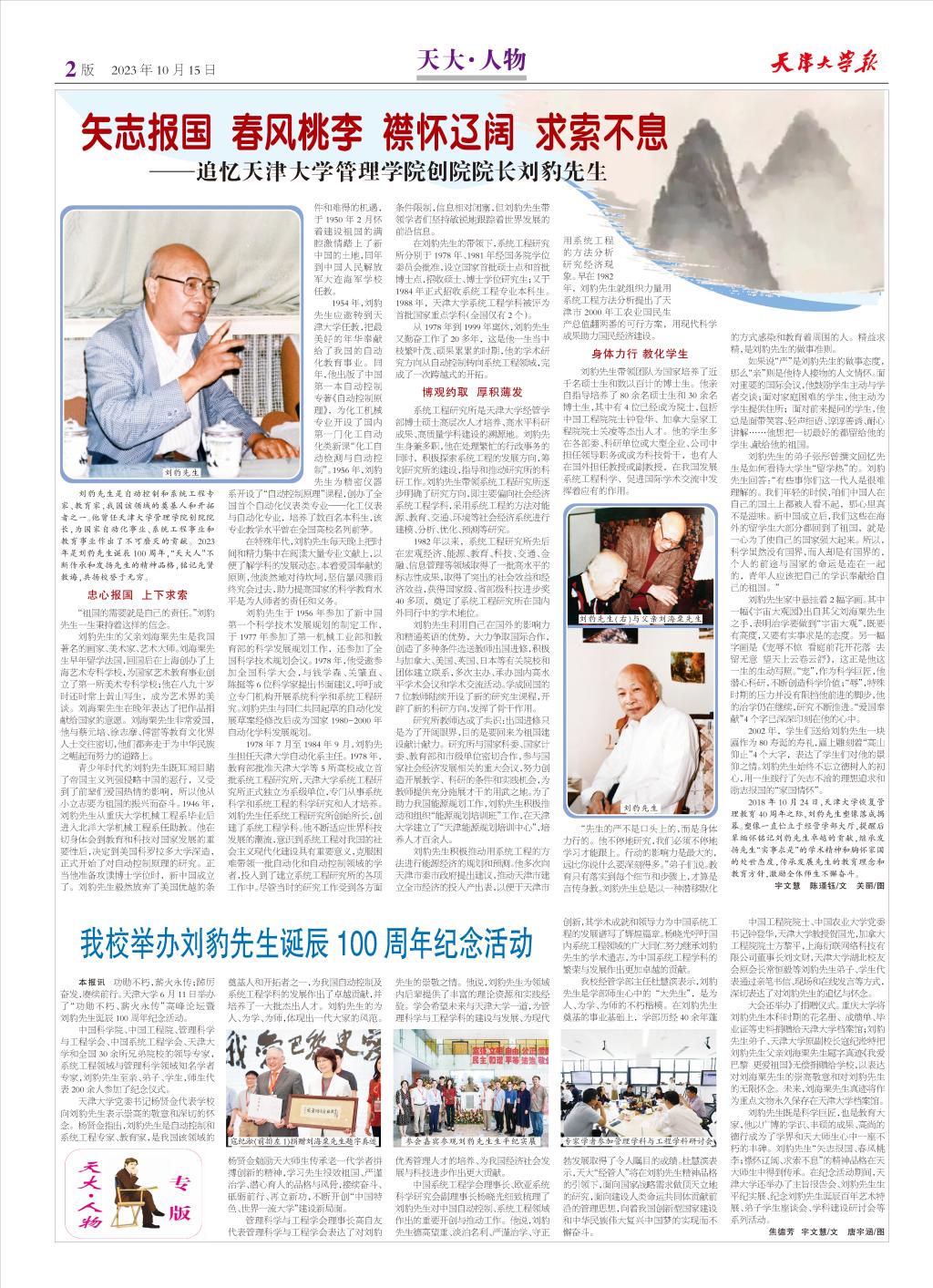 ●矢志报国 春风桃李 襟怀辽阔 求索不息——追忆天津大学管理学院创院院长刘豹先生