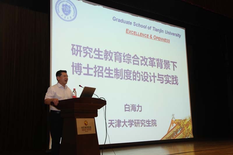 本站讯(通讯员 张立迁 李传波)教育部学位与研究生教育发展中心和中国学位与研究生教育学会联合组织举办的2016年全国研究生招生工作学术研讨及培训会于5月30日-31日在北京顺利举行。来自全国400多个高校和科研院所的研究生招生负责人共424人参加了本次大会。清华大学、天津大学、北京大学和浙江大学共四所高校被邀请就当前研究生招生形势及招生动态等热点问题作专题报告。我校研究生院常务副院长白海力作为特邀专家参加了本次大会,并作了“研究生教育综合改革背景下博士招生制度的设计与实践”专题报告,介绍了我校出台《天津大学关于全面深化研究生教育改革的意见》以及相应配套文件,把招生纳入研究生培养全过程,统筹设计,推出了以“四项机制”、“三阶段六环节”和“五项制度”为内容的博士研究生招生制度改革方案,全面实施“申请—审核”制,取得了以特色招生、质量意识和强化监督为特色的改革成效。