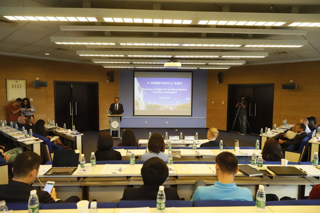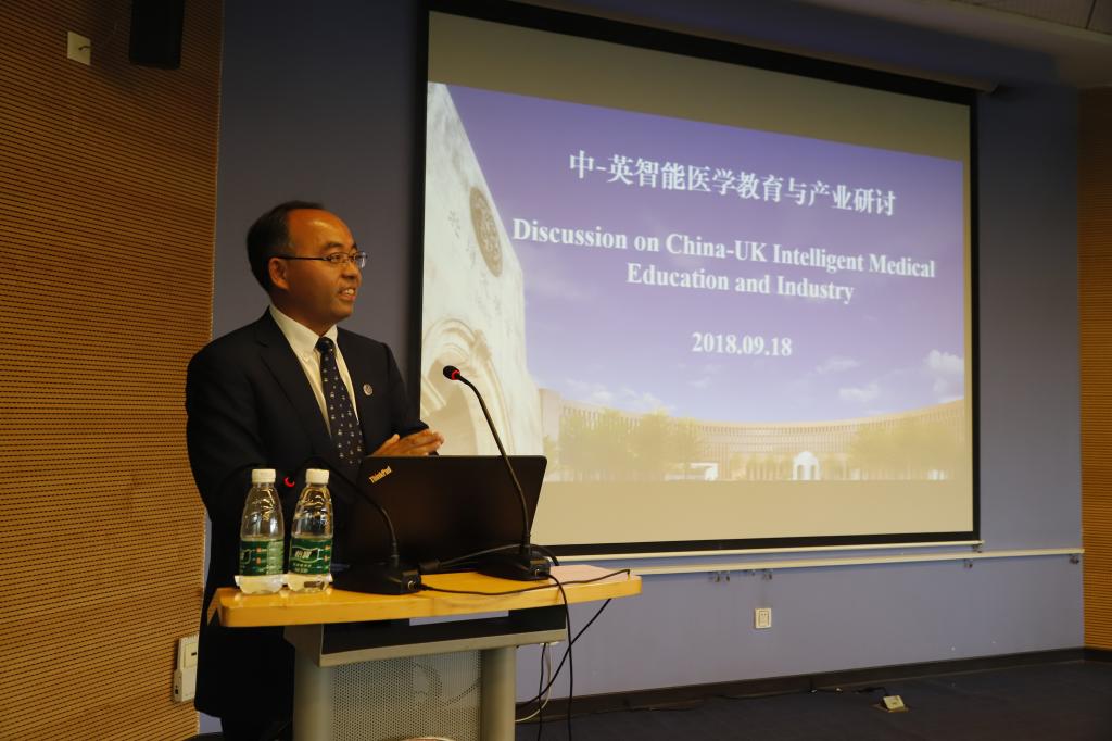 (又讯)2018年9月18日下午,为进一步推动中英双方人工智能和医疗等产业领域的发展,中英智能医学教育与产业研讨活动在天津大学会议楼第七会议室举行。曼彻斯特英中协会行政总监Rhys Whalley、天津大学副校长胡文平出席会议并致辞。曼彻斯特投资发展署行业推广总监James Turner,曼彻斯特大学国际拓展主管Richard Cotton、商务经理王慧,医科建设办公室副主任李伟锋、万亮,医学工程与转化医学研究院副院长庞博等参加了此次活动。
