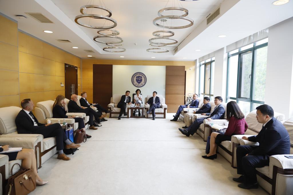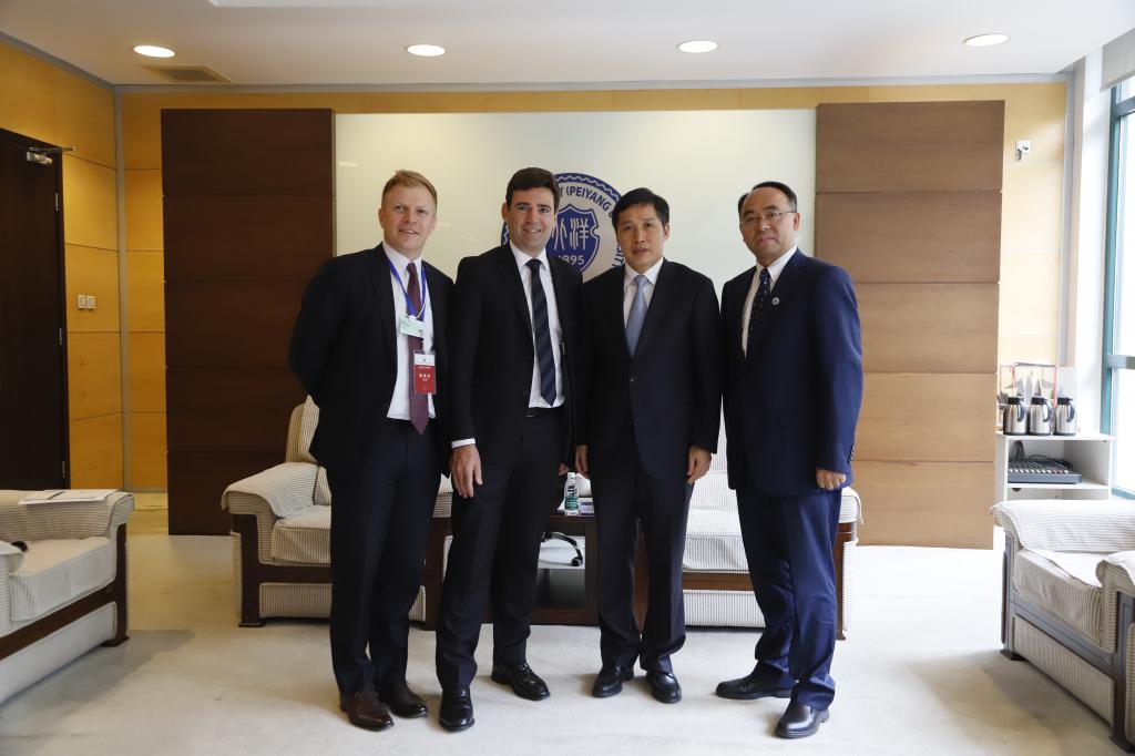 本站讯(通讯员 姚旺 摄影记者 于福旺 )2018年9月18日下午,英国大曼彻斯特郡联合政府郡长Andy Burnham率团访问天津大学,出席了在我校举办的中英智能医学教育与产业高端研讨活动,并到天津大学医学部参观。天津大学校长钟登华会见了Andy Burnham一行,天津大学副校长胡文平,天津大学天津医院院长马信龙,天津大学科研院常务副院长、医科建设办公室主任明东,国际合作与交流处处长张振,医科建设办公室副主任李伟锋、万亮,医学工程与转化医学研究院副院长庞博,生物医学工程系副主任、医工院院长助理倪广健等参与会见。