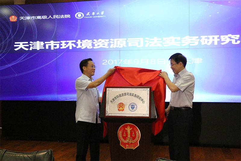 高憬宏和李家俊共同签署了《天津市高级人民法院和天津大学环境资源领域合作框架协议》,并为“天津市环境资源司法实务研究中心”揭牌。