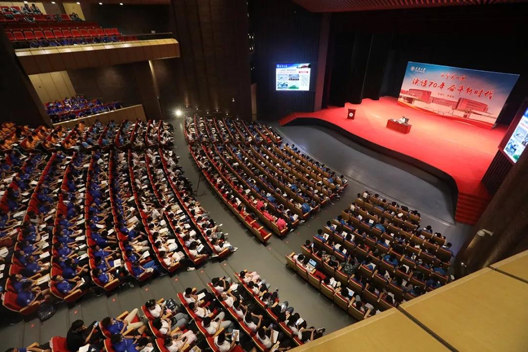 本站讯(记者 张华 摄影 唐蒙)9月5日上午,天津大学北洋园校区求实会堂座无虚席, 1400余名2019级新生现场聆听了党委书记李家俊讲授的开学第一课——“读懂70年奋斗新时代”。李家俊以“天翻地覆、奋斗史诗”“兴学强国、立德树人”“胸怀理想、勇于担当”为题,回顾了新中国成立70年来翻天覆地的变化,讲述了70年来天津大学的发展成就,对新时代天大学子寄予深切期望。