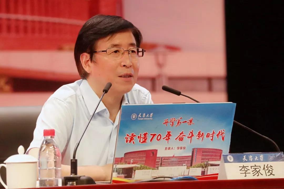 “‘不从纸上逞空谈,要实地把中华改造。’同学们,这是我们校歌中歌词,也是我对你们的期望。”在“开学第一课”结尾时,李家俊这样说到,“形上形下,达才成德,天津大学始终致力于培养具有家国情怀、全球视野、创新精神和实践能力的卓越人才。希望你们学习张太雷、侯德榜、茅以升、余国琮等老一辈天大人身上的精神,以家国情怀关注社会现实,树立兴学强国、达济天下、敢于担当的社会责任感,让青春在为祖国、为人民、为民族、为人类的奉献中焕发出更加绚丽的光彩。”