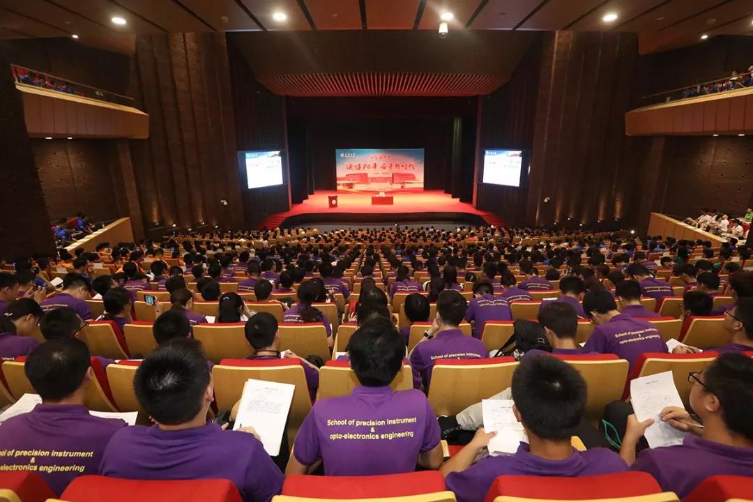“教育兴则国家兴,教育强则国家强。”李家俊讲到,纵观新中国70年高等教育的发展,从“高教60条”的提出,到1977年9月教育部恢复全国高等院校招生考试,“985”“211”工程的启动落实,到“2011计划”构建四类协同创新模式,再到“双一流”建设对高等教育提出的新要求,我国已经成为了名副其实的高等教育大国。李家俊指出,天津大学引领中国高等教育的办学方向,积极探索社会主义大学的办学之路,为我国高等教育现代化做出了积极贡献。在为新生展示了新中国成立70年来天津大学的发展变化后,李家俊又从学校发展愿景、人才培养、师资队伍建设、学科建设、科研创新、国际合作与交流、校园文化等方面向新生们介绍了党的十八大以来学校事业发展情况。他说,“兴学强国、实事求是、严谨治学、爱国奉献和矢志创新是天大品格的核心表达,是激励全体天大人建设中国特色、世界一流大学的强大精神动力。”