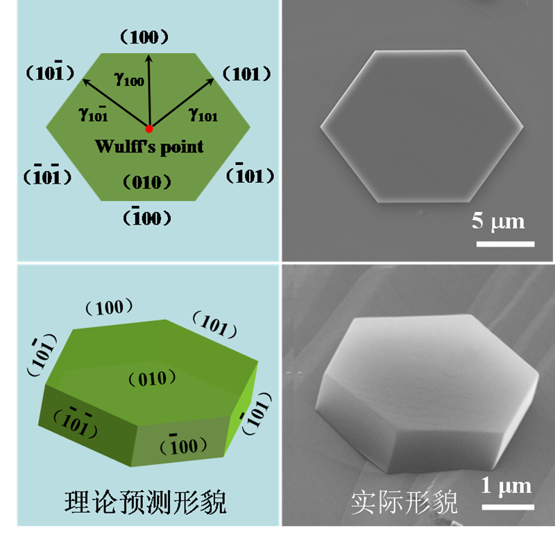 单晶形貌的精确预测和调控在半导体、制药、催化等领域至关重要。胡文平团队及合作者理论和实验相结合,通过范例研究证实Gibbs–Curie–Wulff 理论可用于有机单晶平衡形貌的预测(Adv. Mater. 2016, 28,1697)。该研究为有机半导体形貌的精确预测和生长习性的调控提供了理论依据,在有机单晶研究领域具有重要意义。