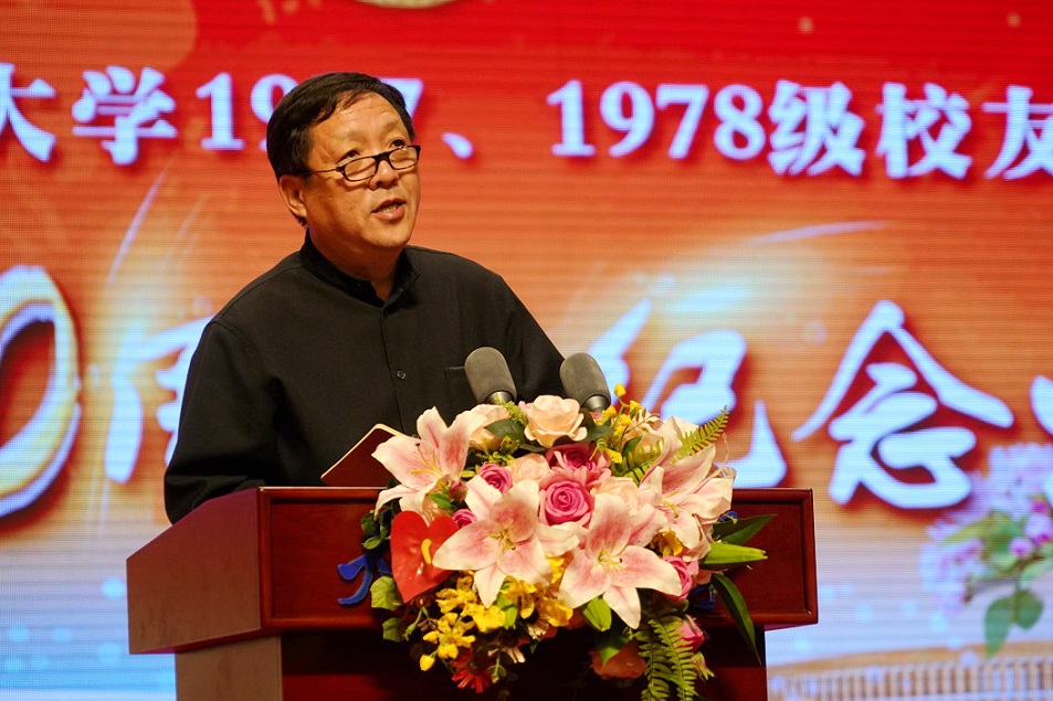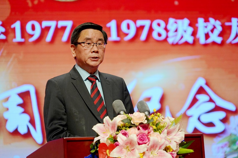 全国五一劳动奖章获得者、天津市教学名师靳世久教授作为77、78级学生的教师代表发言。靳世久深情回忆了40年前指导学生们毕业设计的场景。他说,77、78级学生具有强烈的求知愿望、艰苦奋斗的精神、积极向上的心态和敢于拼搏进取的勇气,他们专注投入、脚踏实地的作风也深深影响了自己。靳世久也衷心感谢校友们“为母校争了光,添了彩”。