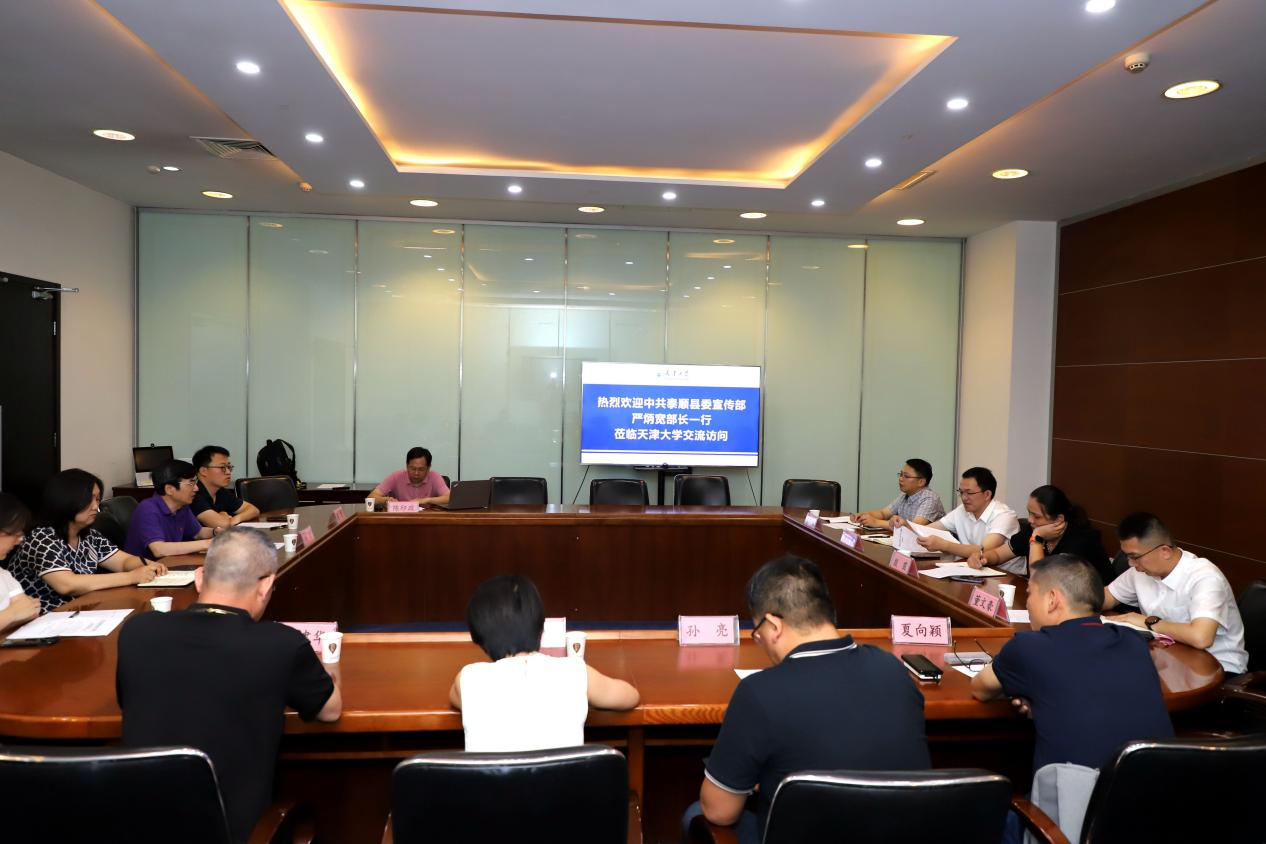 本站讯(图文 王涛)6月28日下午,浙江省温州市泰顺县县委常委、宣传部部长严炳宽一行9人来访我校。天津大学党委常委、宣传部部长杨欢会见来宾,并在卫津路校区会议楼第五会议室进行了座谈。
