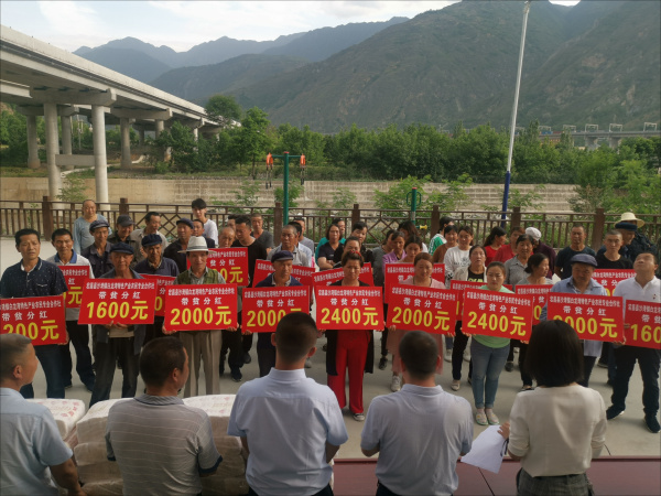 拿到分红的村民申柒凤一遍又一遍端详着分红牌上的数字,话语间难掩激动和喜悦,“我家里有五口人,上有老下有小,前几年丈夫因意外事故失去了劳动能力,两个娃娃还在上学,家里靠我一个人支撑。之前把产业到户扶持资金入股到合作社,今天拿到了2000元的分红,现在的日子过得越来越有盼头啦!”