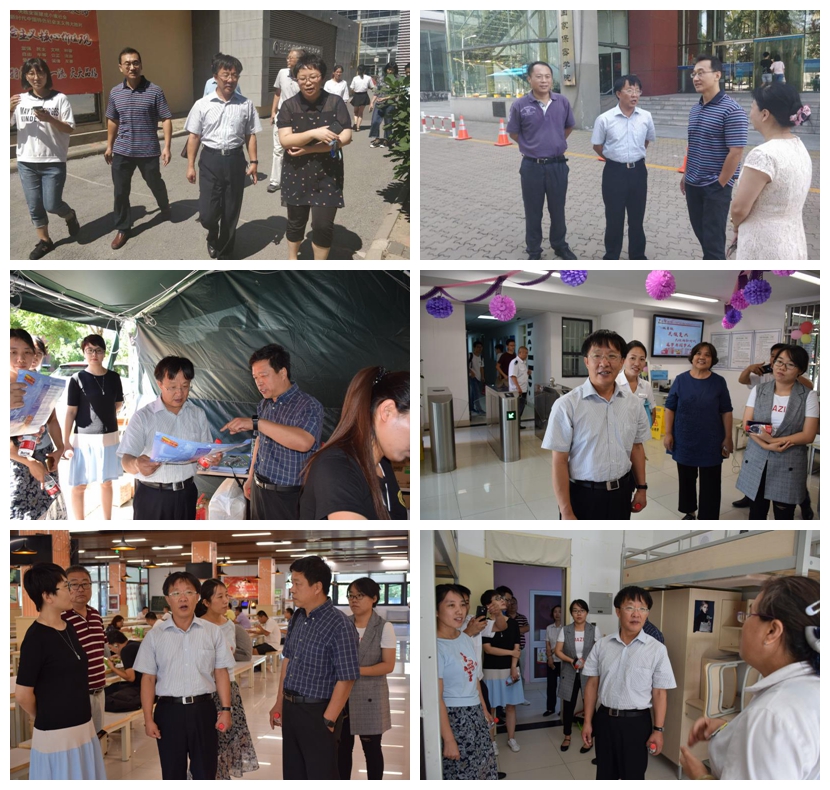 在卫津路校区,张凤宝在后勤保障部部长尚宇光、党委书记杨志永等部门领导的陪同下,先后来到学五食堂、鹏翔超市服务点、鹏翔公寓、25楼迎新帐篷等地点,详细了解了食堂用餐供给、迎新物资是否充足、新生宿舍准备是否齐全、迎新服务点水电保障等具体工作安排。