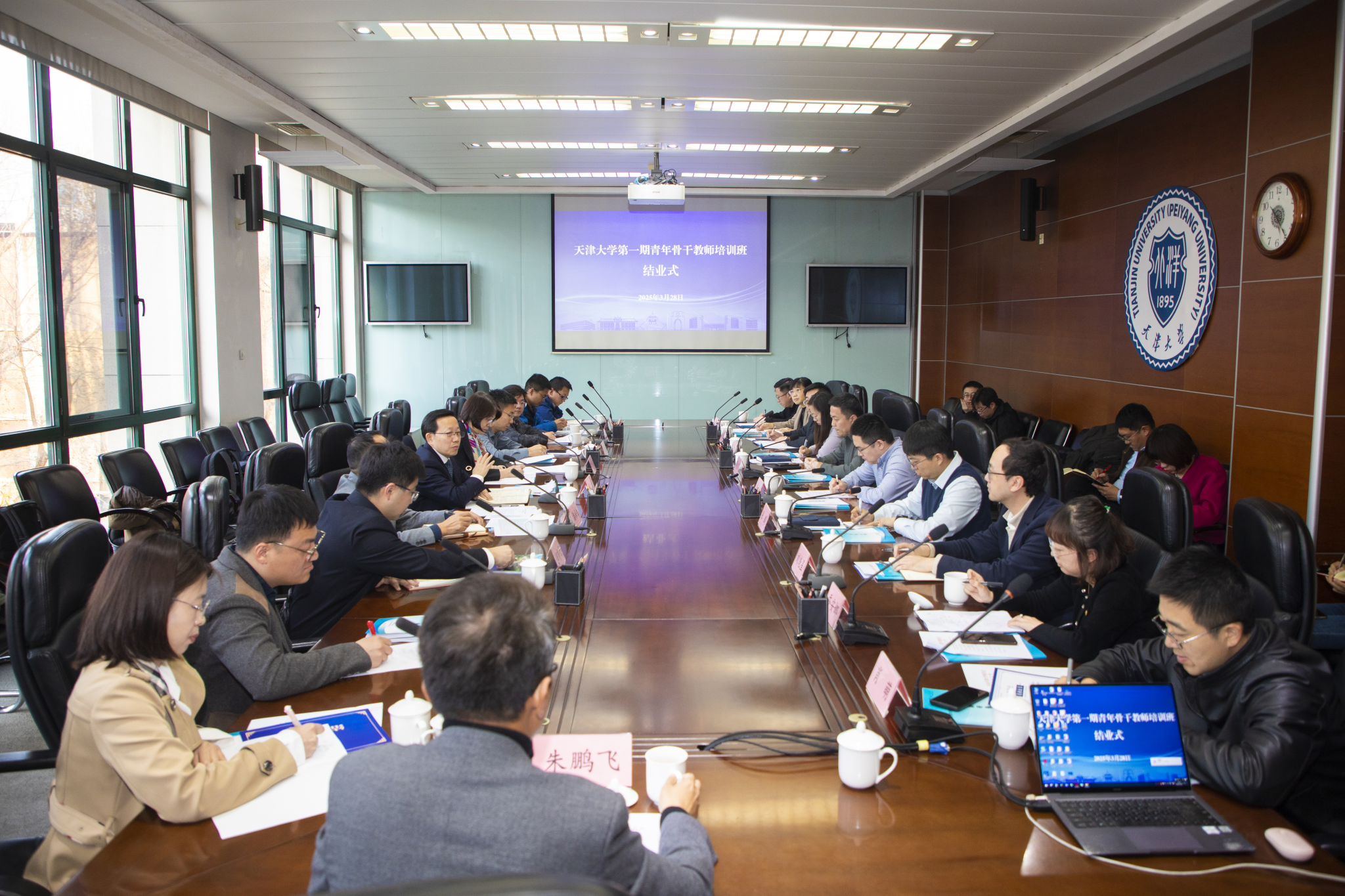 (供稿:党委组织部、教师培训中心 摄影:陈晓金)共话情谊、共期未来,2025年3月28日,天津大学第一期青年骨干教师培训班(以下简称“第一期青骨班”)的学员们在卫津路校区会议楼第一会议室共聚一堂,隆重举办第一期青骨班结业式。校长柴立元,党委常务副书记雷鸣,党委组织部、教师培训中心有关负责同志出席结业式。结业式由雷鸣主持。