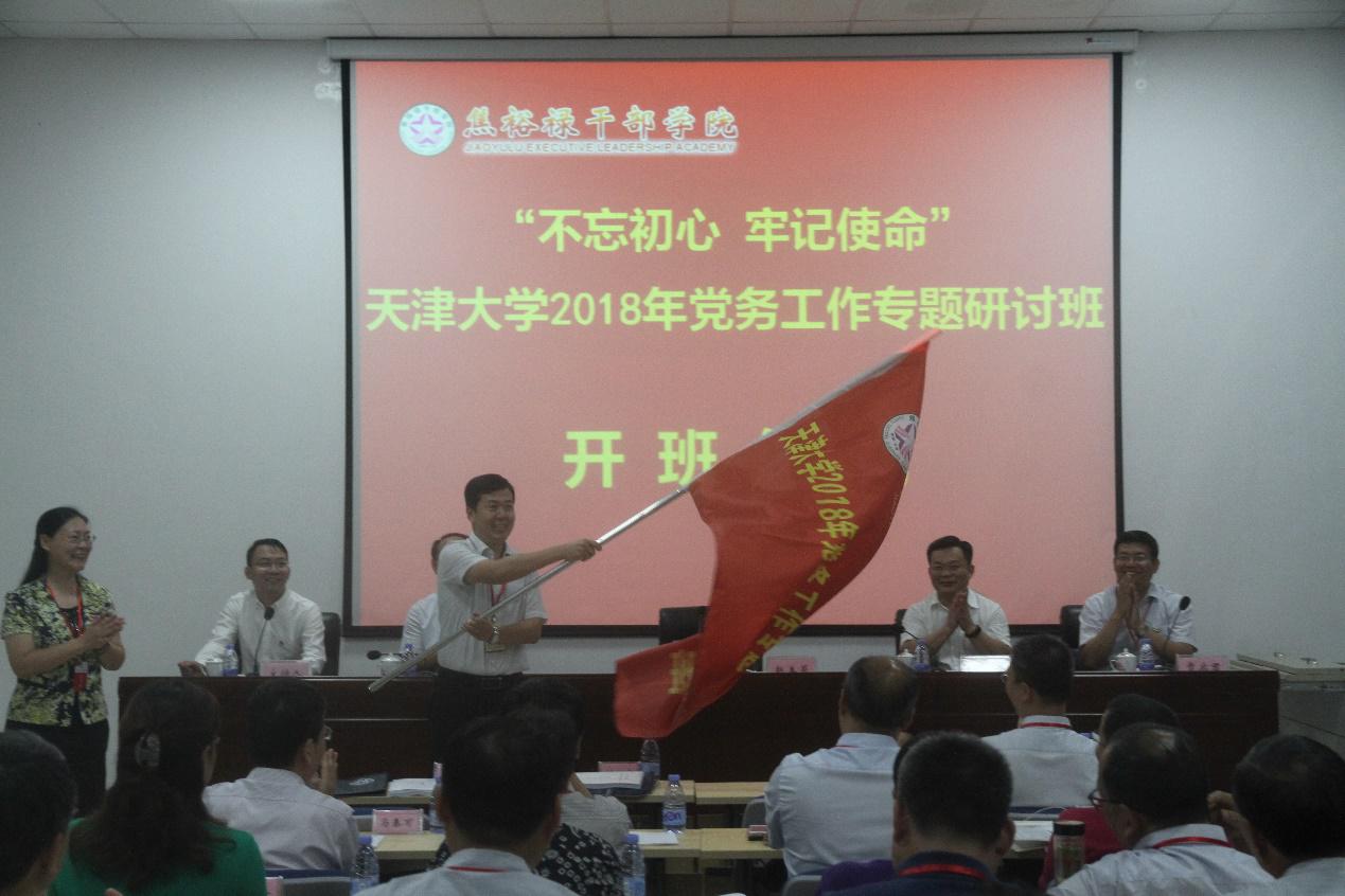 8月20日下午,开班仪式在焦裕禄干部学院教学楼一号教室举行。兰考县委组织部部长、焦裕禄干部学院党委副书记、常务副院长席建设代表焦裕禄干部学院致欢迎辞,他对专题研讨班的举办表示祝贺,并介绍了焦裕禄同志的生平事迹、兰考的历史以及干部学院的发展情况。学校党委常委、组织部部长赵美蓉在讲话中指出,兰考是焦裕禄精神的发祥地,是焦裕禄同志为之奋斗和献身的地方,更是全国宣传学习焦裕禄精神的主阵地。2009年4月,习近平同志视察兰考时指出“焦裕禄同志用自己的实际行动,塑造了一个优秀共产党员和优秀县委书记的光辉形象,铸就了亲民爱民、艰苦奋斗、科学求实、迎难而上、无私奉献的焦裕禄精神”。我们选择来到兰考参加培训,就是要学习这种精神,使之转化为我们建设高素质专业化干部队伍,加快世界一流大学建设的精神源泉和不竭动力。她对学员提出三点要求,一是要端正学习态度,在学懂弄通做实上下功夫;二是要深刻领悟焦裕禄精神,学以致用;三是要严格执行学习制度,遵守培训纪律。最后,赵美蓉为专题研讨班学员代表、海洋科学与技术学院党总支书记凌国维授班旗。