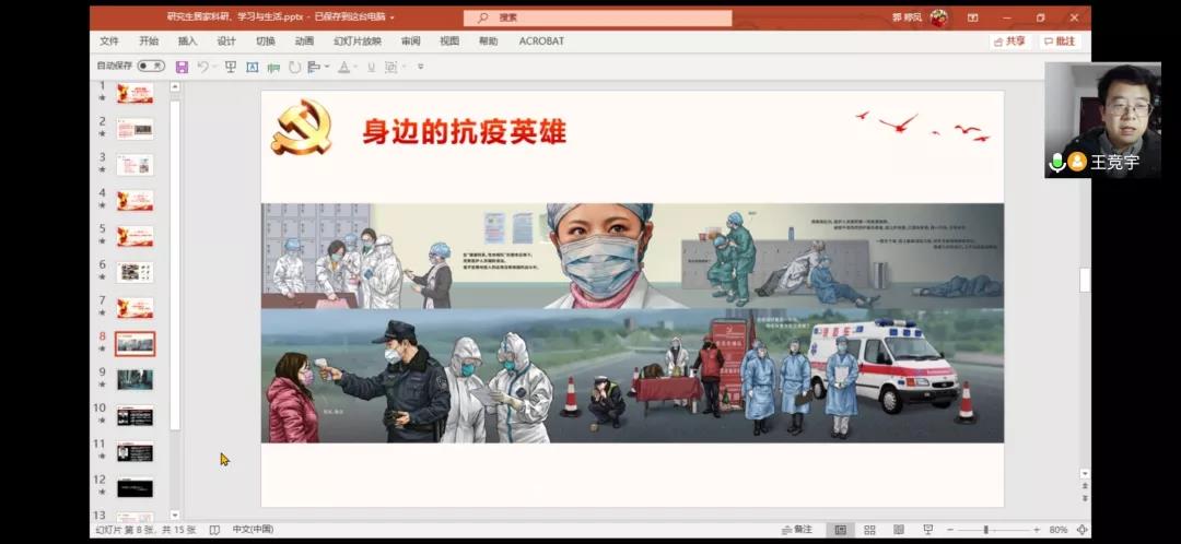 我校多个学生党团支部组织开展线上主题组织生活和团日活动。机械学院2019级博士生第三党支部分享武汉市武昌医院院长刘智明以及武汉市民警吴涌等牺牲在抗疫一线的英雄的感人事迹,号召全体支部成员以抗疫英雄为榜样,主动担当作为,立志科研报国。精仪学院2018级工程科学实验班召开“春暖花开时共相约”线上主题团日,分享抗疫故事,沉痛悼念在抗疫过程中不幸去世的医护人员。自动化学院2019研电通2党支部通过线上参观烈士博物馆,回顾革命先烈英雄事迹,感受其赤诚的爱国之情,并结合时事挖掘抗击疫情战役中的英雄事迹。