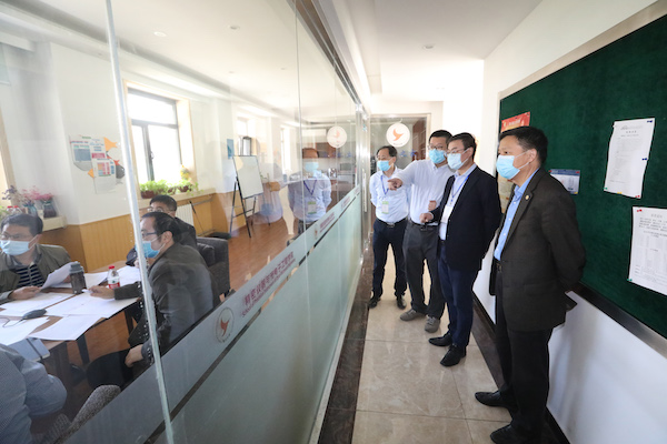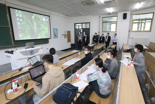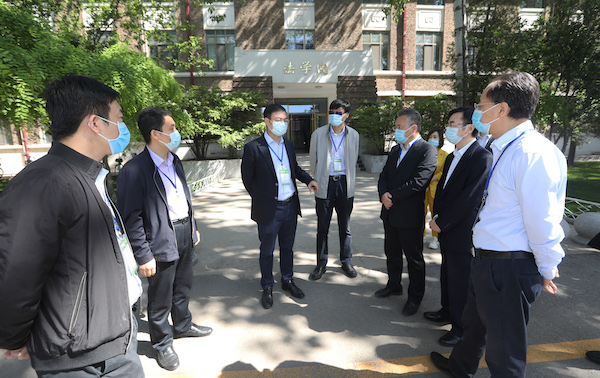 本站讯(记者赵晖 摄影唐蒙)天津大学于5月9日启动2020年硕士研究生招生远程复试工作。5月12日上午,校长金东寒到研究生复试现场进行巡视,校党委常委、副校长王树新,研究生院及信网中心相关负责同志陪同。
