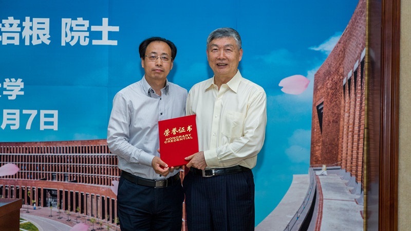 报告会最后,王树新向李培根授予“求是名师讲堂”荣誉教授证书。