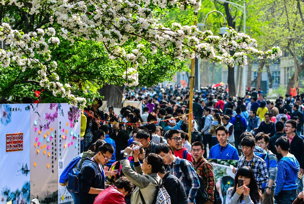 “天大·海棠季”文化活动有“繁花与共”“逐梦新征程”“绽放·新百年”“我寄春天予你”等年度主题,彰显时代足音。活动在设计中注重德智体美劳“五育并举”,以德育铸魂,起到润物细无声的育人效果。