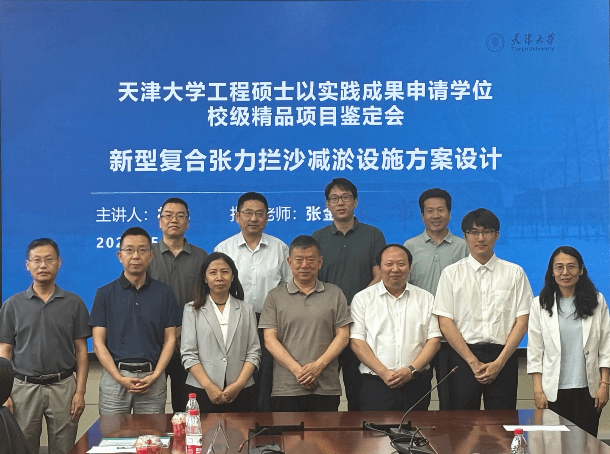 本站讯(建工学院供稿)为深入贯彻全国工程专业学位研究生教育指导委员会关于工程类专业学位硕士培养的改革要求,天津大学于2025年5月27日在43教学楼D401组织召开《新型复合张力拦沙减淤设施方案设计》鉴定会。本次会议由建筑工程学院主办,聚焦工程类专业学位硕士以实践成果申请学位的评价体系构建,通过校企协同评审机制对硕士研究生祁航的学位申请方案进行系统论证。