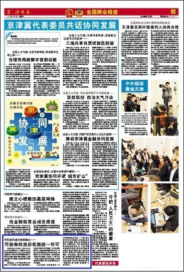 今晚报刊发《何悦委员递交提案建议——污染物排放应实施统一许可》主题文章 住津全国政协委员、致公党天津市委会副主委、天津大学法学院教授何悦发声