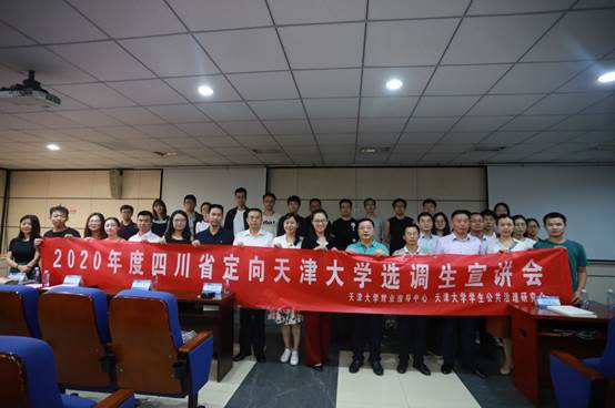会谈结束后,宣讲团一行在25楼A816报告厅举办宣讲会,学工部副部长柳丰林出席宣讲会并致辞。他谈到,这场宣讲会,是2020届毕业生各省选调生招募政策推介的第一场,希望未来加强校地对接,为天大学子带来更多的引才新政,输送更多高素质人才助力四川经济社会发展。随后,何晓云从岗位安排、组织培养和成长环境等多个方面讲解四川选调生政策,让同学们对四川“选育管用”的选调生培养工作更加充满信心。广安、泸州和内江等地负责同志分别针对本市的具体情况进行宣讲,表达四川各市州对引进天大学子的诚意。在川工作的天大优秀选调生代表,李俊霖和张诗玥分别描述他们的工作生活状态,结合自己的工作经历和实际情况分享属于他们的进步与收获,并鼓励同学们能够“胸怀家国,逐梦四川”,投身西部发展,书写辉煌篇章。
