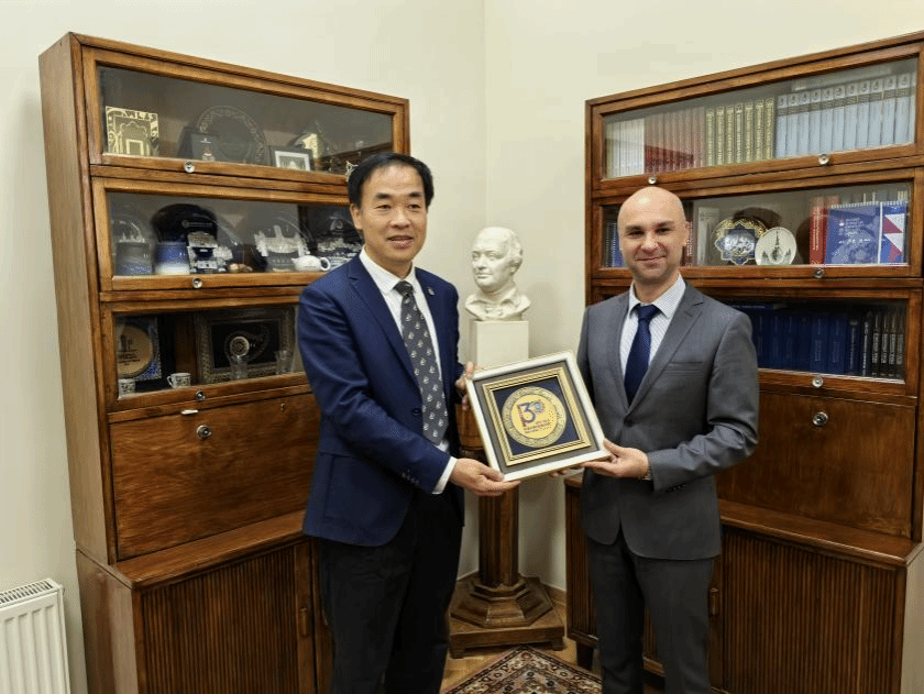 5月29日,代表团访问莫斯科国立大学,与副校长Yuri A. Mazei教授、国际发展部主任Igor P. Bochkov进行会谈。Mazei教授对代表团的来访致以热烈欢迎,并介绍了莫斯科国立大学的历史沿革、对华合作成果及全球化战略。双方肯定了近年来在精密仪器、应用数学领域的合作基础,规划拓展激光物理、基础数学等方向的联合研究,期待在已有合作的基础上,进一步加强科研合作和师生交流。