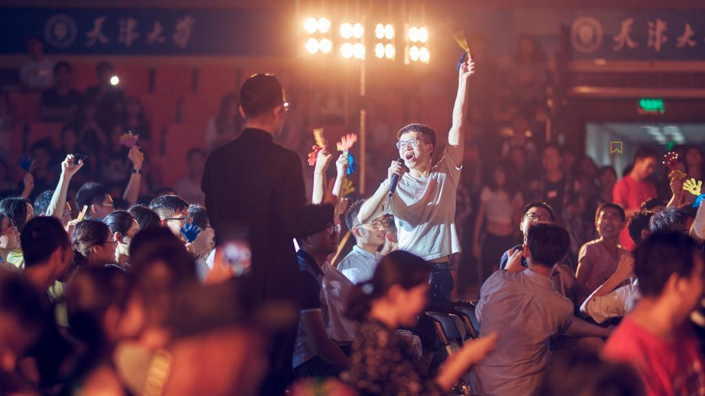 嘹亮挺拔的小号声吹响了整场晚会开始的号角——四海同心大点名。各学院学生代表高举院旗,激情的挥舞、慷慨的发言,无不蕴含着对母校的感恩之心,也展现了天大学子的精神面貌,表达了对未来发展的坚定信念,点燃了全场热情。