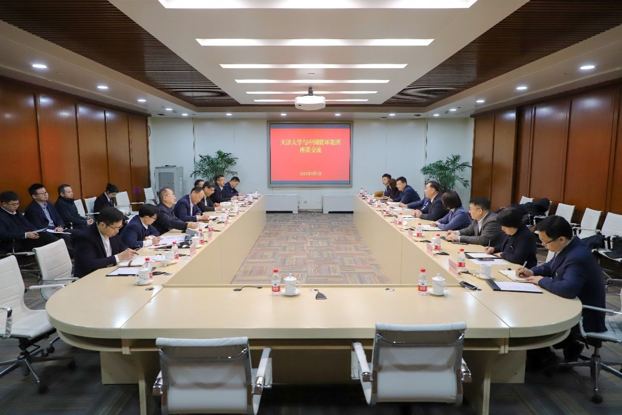 刘宇对杨贤金一行到访表示热烈欢迎,他指出,天津大学为中国近代高等教育肇基,为国家和社会培养了众多高层次人才,在贯彻国家战略、服务京津冀协同发展、推动科技创新等方面走在前列。中国资环是党中央、国务院从党和国家事业全局和战略高度决策组建的中央企业,肩负着保障资源安全、引领产业发展、助力美丽中国建设的重任。希望双方建立常态化对接沟通机制,深化人才培养、科技创新、平台建设等方面合作,打造校企产教融合示范区,引领资源循环产业高质量发展,更好地保障国家战略资源安全。朱建春围绕公司组建、战略规划、总部建设等方面详细介绍了中国资环的基本情况。