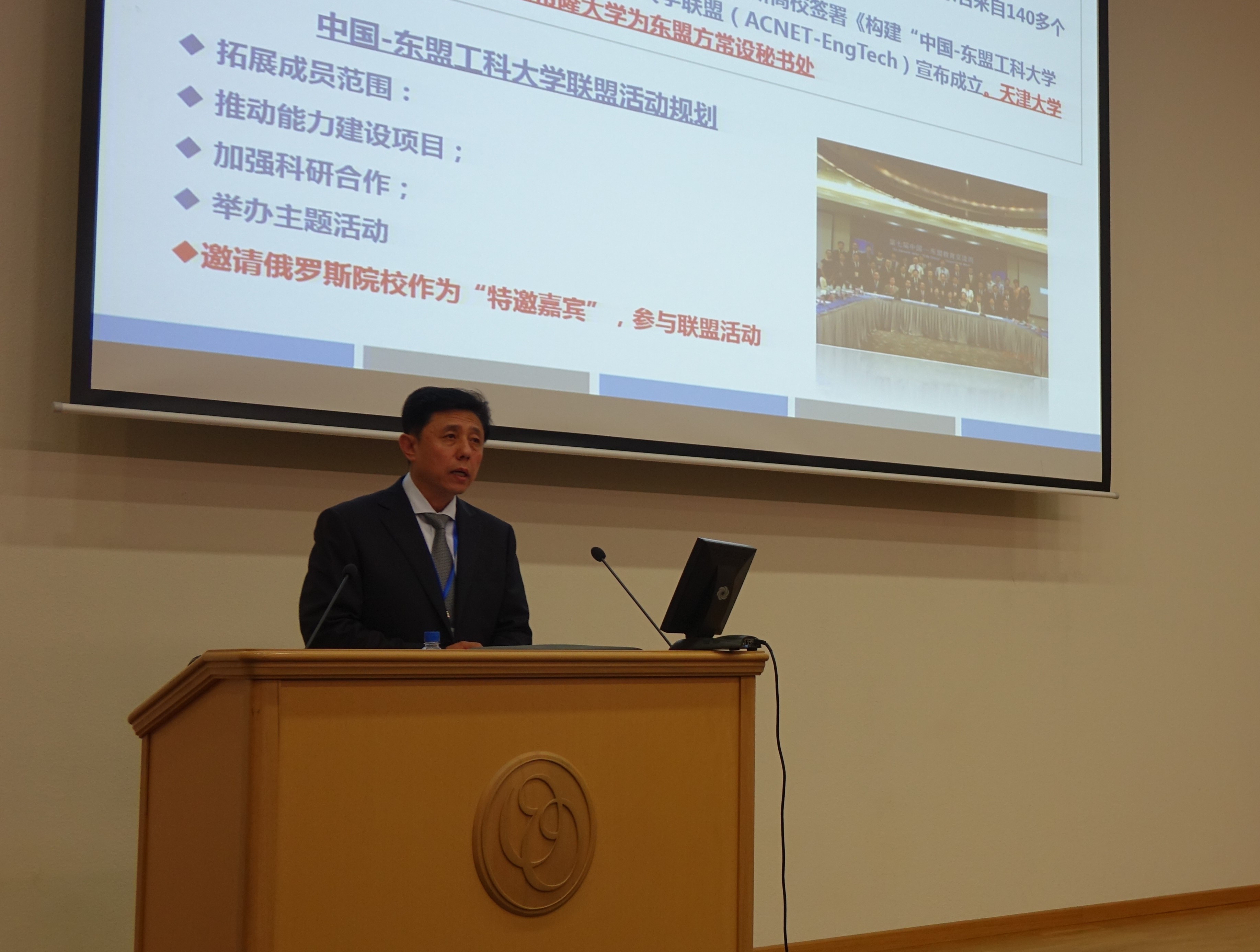 古瑶首先向中俄高校来宾简要介绍了天津大学的历史发展、学科建设及国际化发展,随后特别阐释了以天大为代表的中国高校开启的中国工程教育新范式——新工科。他指出,新工科开启了中国高等工程教育改革的新征程,是对新一轮科技革命和产业变革的主动响应,天津大学从重构专业体系、创新育人模式、深化校企合作以及加强国际化建设四个方面,推动新工科改革。