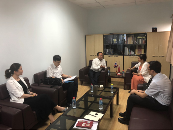 7月9日,代表团一行拜会了中华人民共和国驻泰王国使馆教育组,向教育组一等秘书宋若云、二等秘书马超及相关人员汇报了我校与东盟各国高校合作进展。
