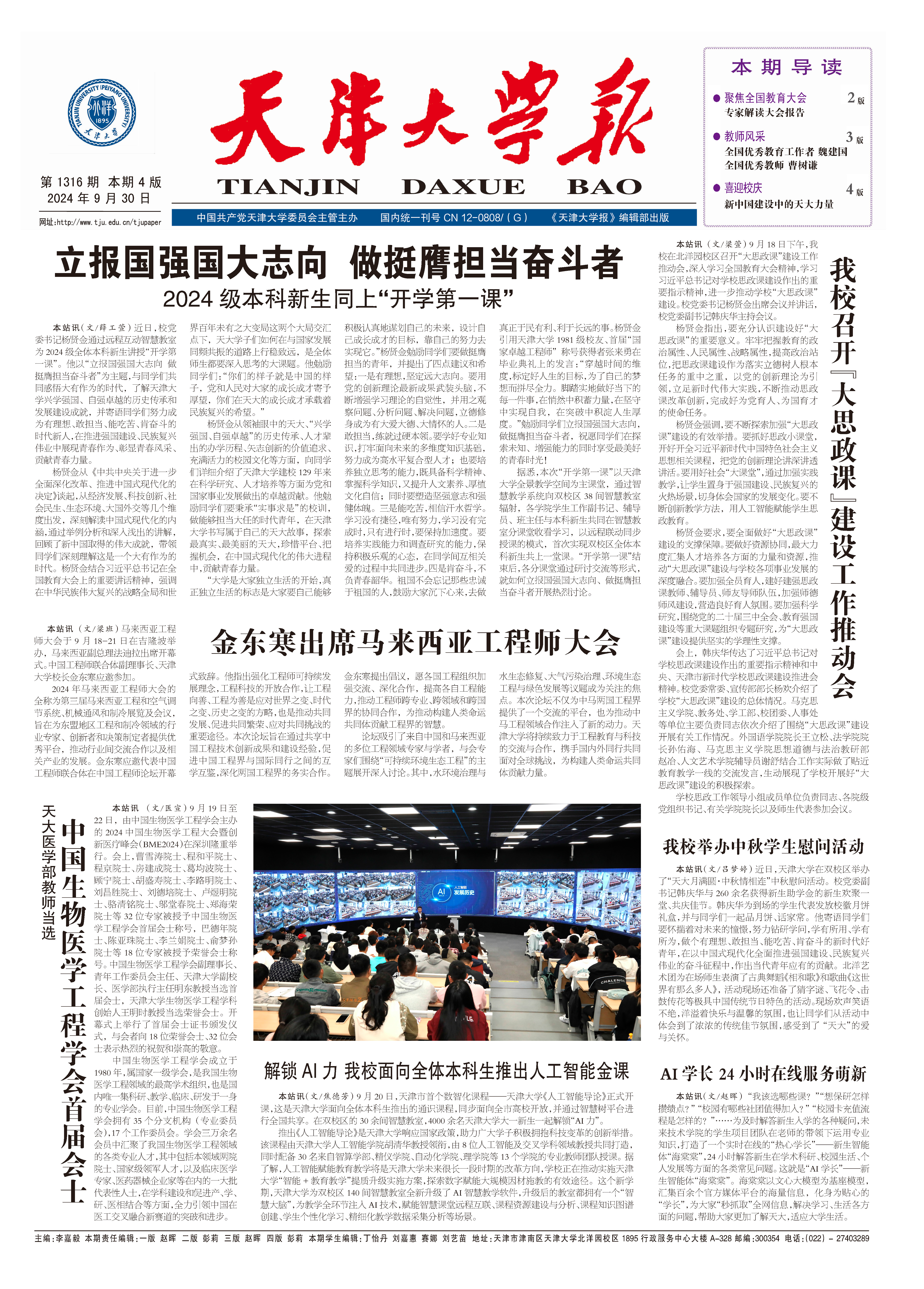 ●立报国强国大志向 做挺膺担当奋斗者——2024级本科新生同上“开学第一课”