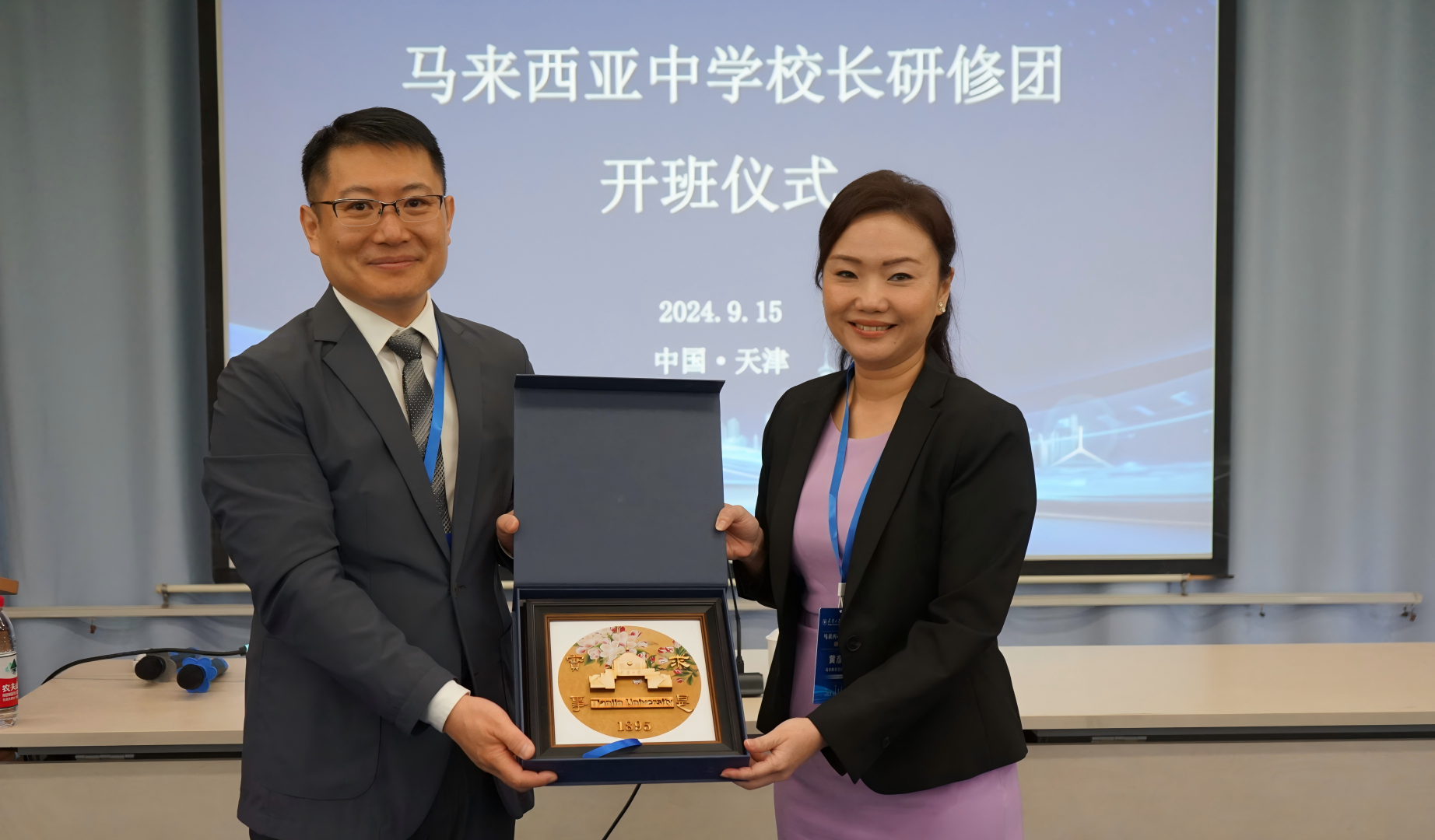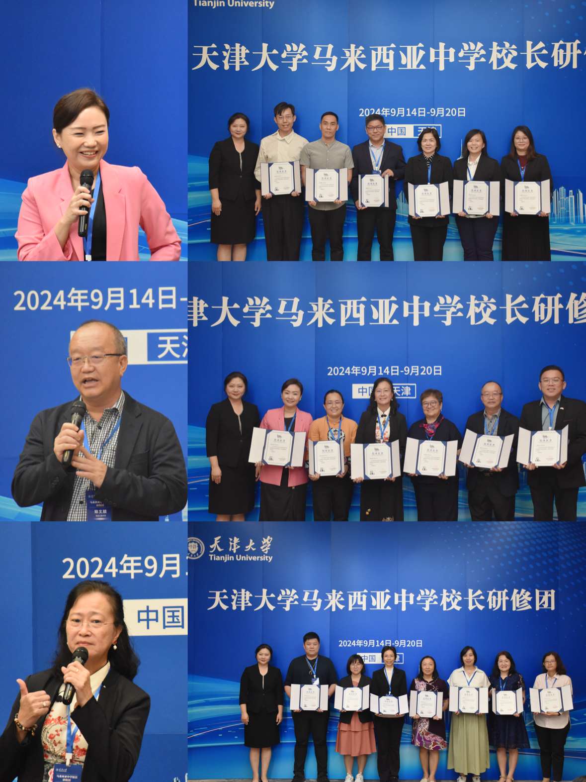 9月19日,天津大学马来西亚中学校长研修团闭幕式在融侨假日酒店举行,国际教育学院党委书记金旋、副院长杨小锐出席。金旋表示,通过此次研修活动,双方进一步了解了彼此的教育体制,为今后开展更扎实的合作交流奠定了坚实的基础,天津大学希望马来西亚各中学能以此次活动为契机,广泛开展多领域、多层次的合作,并欢迎更多马来西亚优秀学生来到天津大学求学。马华教育咨询委员会副主席黄彦婷表示,此次研修之行令马来西亚中学校长们见识到了天津大学一流的软硬件设施和高品质的办学、管理服务水准,马来西亚学生们学在天大、乐在天大,相信所有团员都拥有了一次完美的天津之旅。研修团代表诗巫公教中学校长郑文牍、大山脚日新国民型华文中学校长洪贵蕊分享了此次研修的心得体会。他们表示,天津大学此次研修团日程安排周到,研修内容丰富,通过一周的学习参访,所有研修团成员收获颇丰,并期待未来与天津大学开展包括生源推荐、教师培训等各类深度合作。闭幕式上,金旋向所有研修团成员颁发了结业证书。