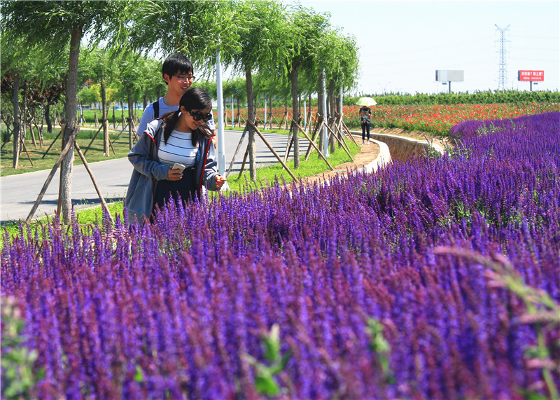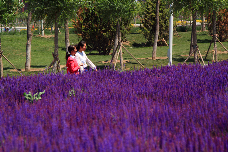 本站讯(文并图 赵习钧)最近,一组拍摄于天津大学北洋园校区的“薰衣草”花海图片刷爆朋友圈,网友纷纷大喊“美爆了”。为此记者来到天大北洋园青年湖西岸进行实地探访,果不其然,映入眼帘的是成片的紫色花海,路边有不少游客都在观赏拍照。可记者从校方园林工作负责人处了解到,大家拍摄的成片的紫色花朵并非薰衣草,而是一种学名叫“鼠尾草”的植物。