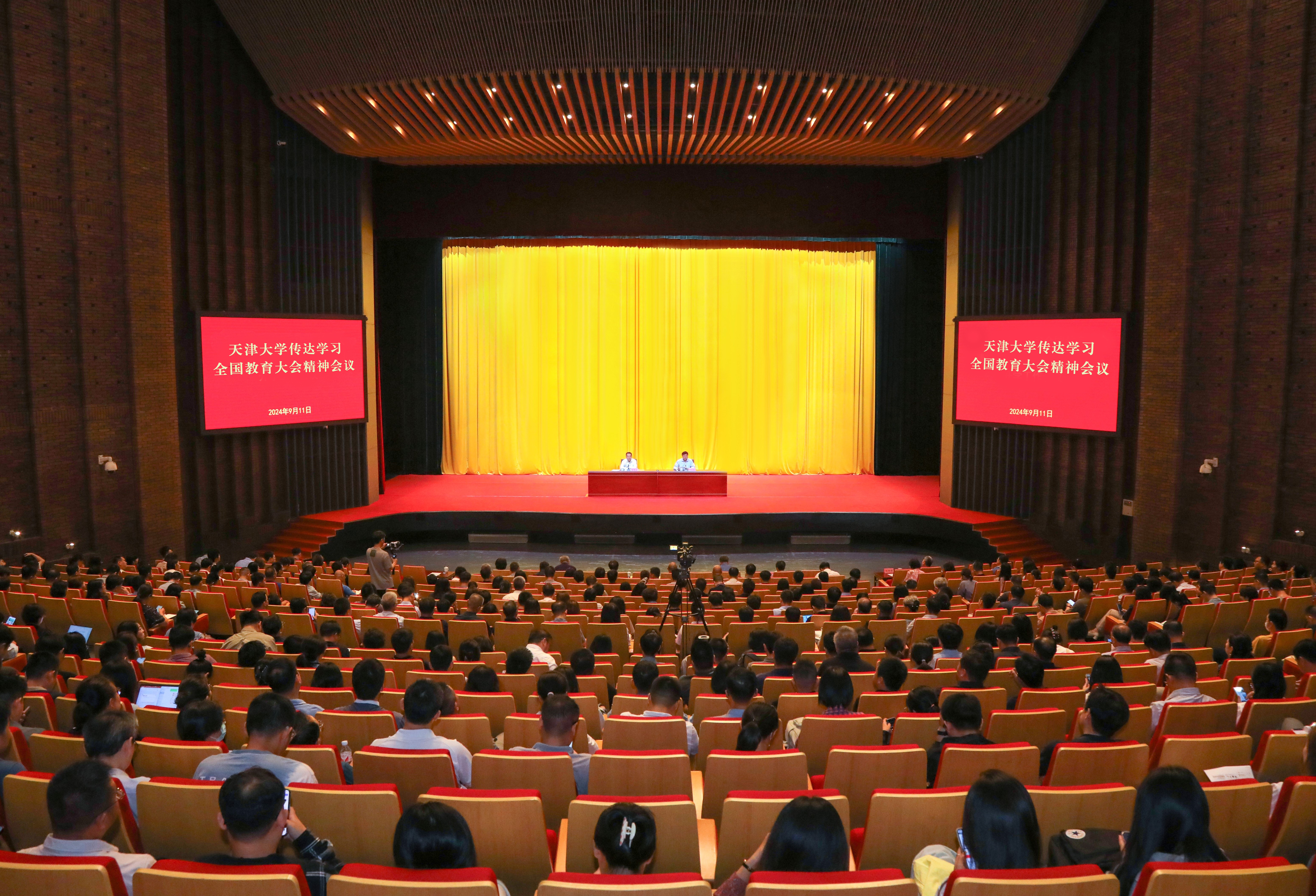 本站讯(记者 焦德芳)9月11日,天津大学在北洋园校区求实会堂召开传达学习贯彻全国教育大会精神会议。天津大学党委书记杨贤金传达全国教育大会精神,校长金东寒部署新学期重点工作。会议由杨贤金主持。