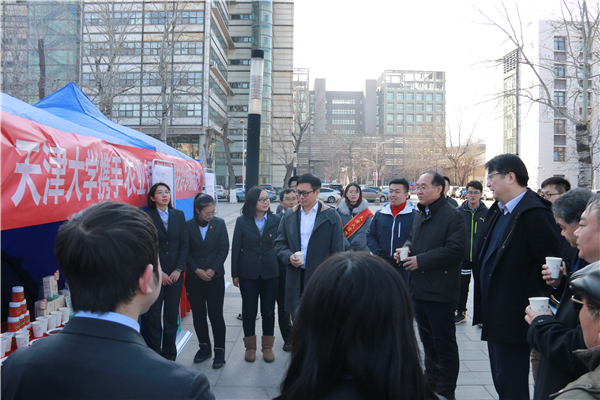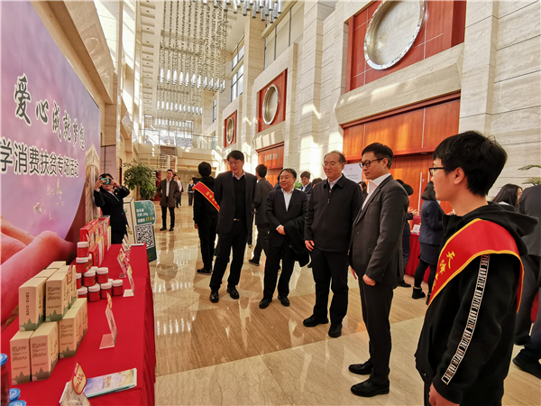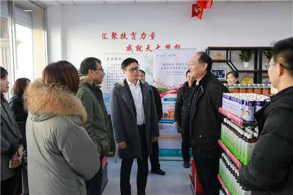 会见前,刘东伟一行参观了天津大学扶贫超市,并前往天津大学“联农助农 蜂花正茂”展销活动现场与工作人员进行了交流。