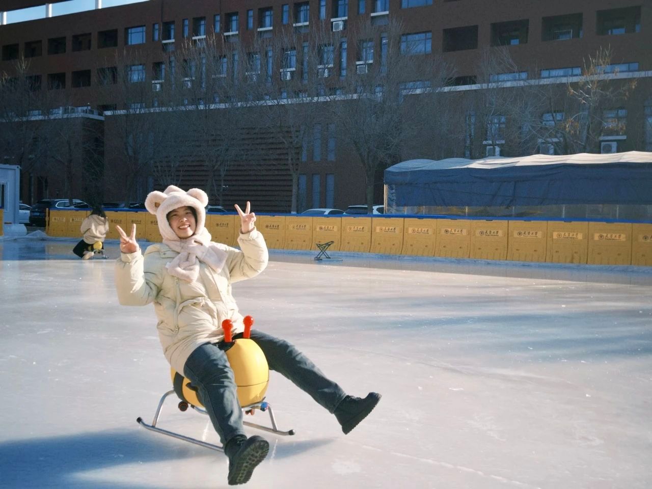 教育学院2023级硕士生常朵朵说:“今年冬天迟迟不下雪,少了往年滚雪球、堆雪人的快乐,还好北洋园北区菜鸟驿站旁边的小型滑冰场为我们提供了滑冰的机会,还有小滑冰车供大家使用。最近的学业压力有点大,滑冰场提供了一个缓解压力、释放心情的好去处,在这里玩非常开心!”机械学院2022级本科生刘若彤说:“今天第一次注意到智算大楼后面竟然还有滑冰场,在天大校园里见到滑冰场很惊喜,尤其是今年没见到下雪,所以能在这里与朋友一起滑冰也是一种不错的体验,推荐大家与小伙伴一起来玩”