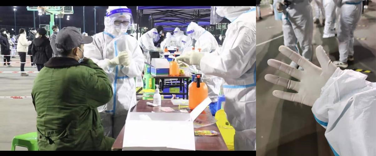 在核酸检测现场,时常能看到志愿者们紧握的双手。当晚最低气温降到了零度以下,志愿者们在室外坚持工作数个小时,双手早已冻得发麻,只能靠握手这种方式恢复手部知觉。根据防疫要求,在佩戴手套前,双手需要经过了酒精消毒,还未来得及挥发的酒精让手指的体感温度降到了冰点。站在寒冷的夜晚,看着这双紧握的手,心中升起的却是暖暖的敬意。
